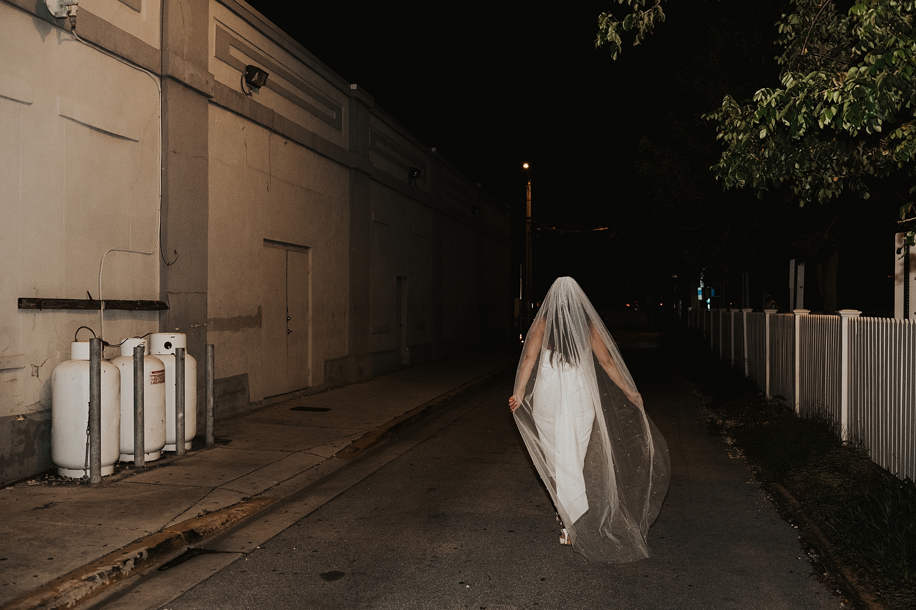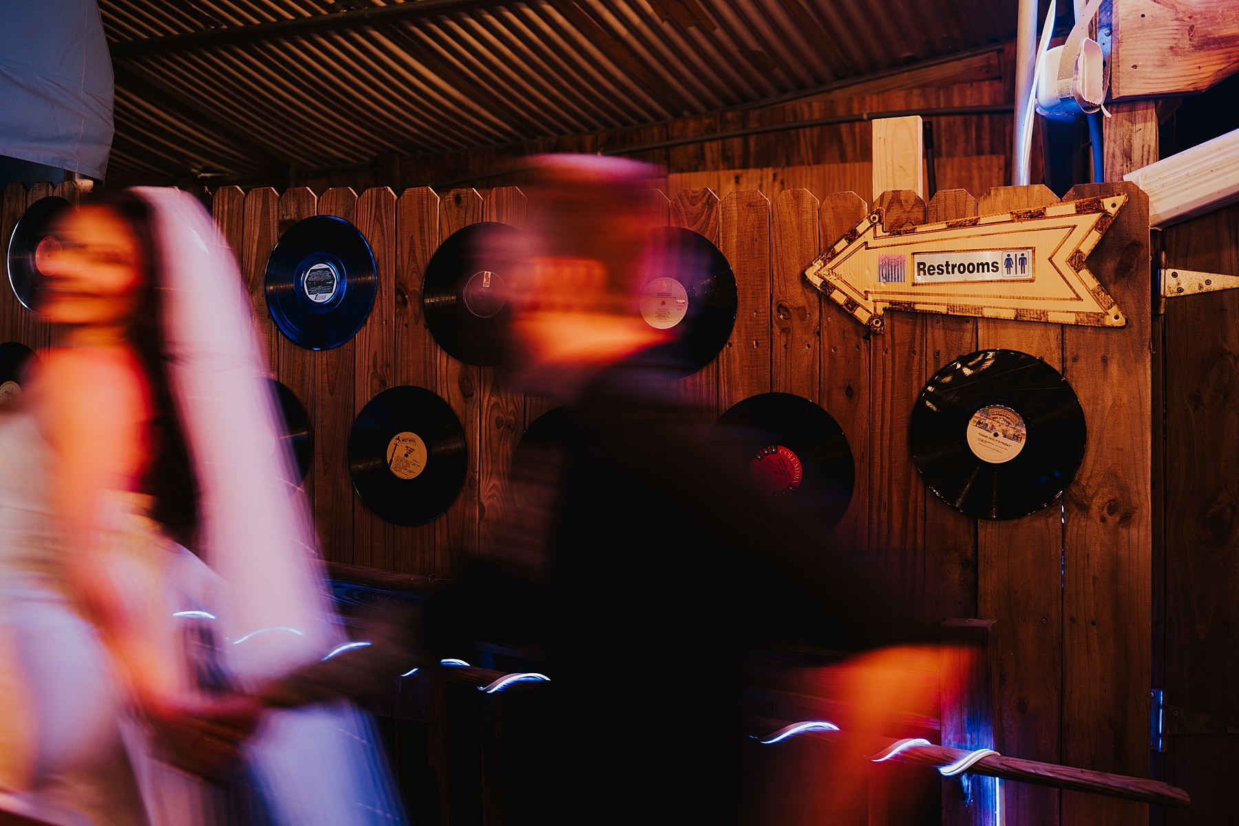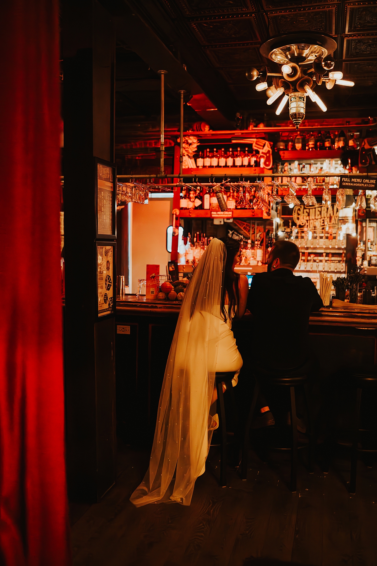 To incorporate some colorful, retro vibes and to celebrate the beginning of their marriage, we scootered over to Tropic Cinema. This retro-inspired movie theatre is the perfect backdrop for any couples wanting photos with some vintage feels. A+C popped champagne on the street and soaked in the moment of becoming husband and wife.