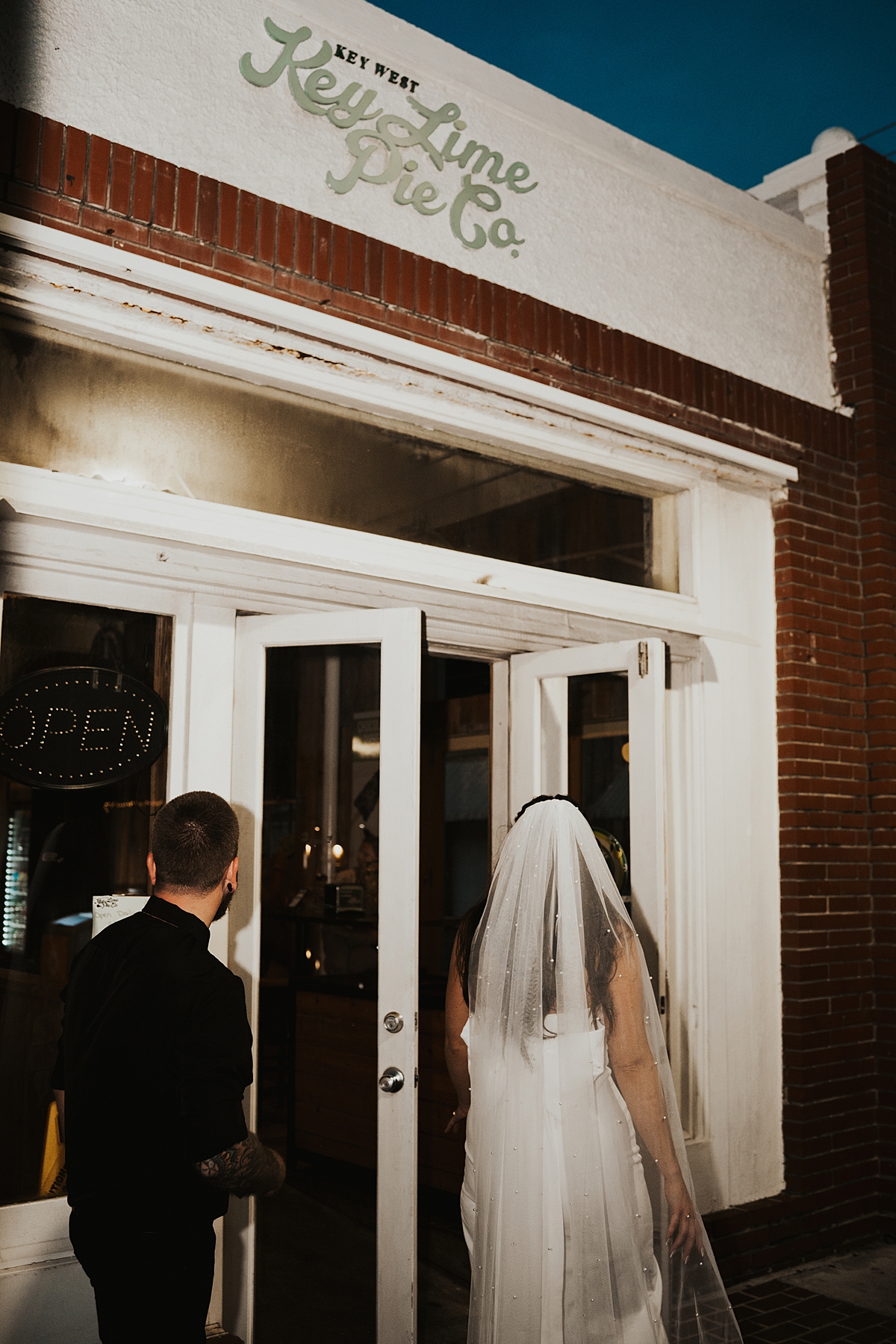 There are three things that make the perfect date night for this couple: cocktails, snacks, and people watching. Key West easily brings all three together for the most epic date night-inspired elopement. After popping champagne over at Tropic Cinema, we headed to Key Lime Pie Co. for these two to share a mini key lime pie on the steps across the street.
