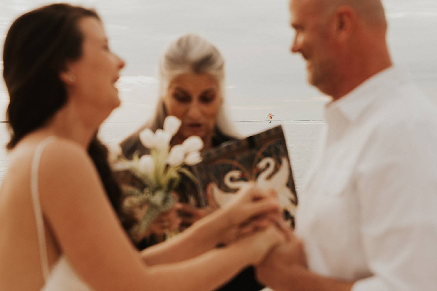 After Jessica got ready in their cottage, her and I headed down to the dock for the ceremony. As we were walking out, we didn’t realize the officiant wasn’t even there and we were walking prematurely – pretty much an oh shit moment – but it was hilarious. It’s a reminder that when you elope you can do whatever you freakin’ want and it’s truly freeing. During the ceremony, Jessica and James exchanged dollar bill rings and ring pops. They said the sweetest vows. We were photobombed. They had the most epic sunset. It was amazing.