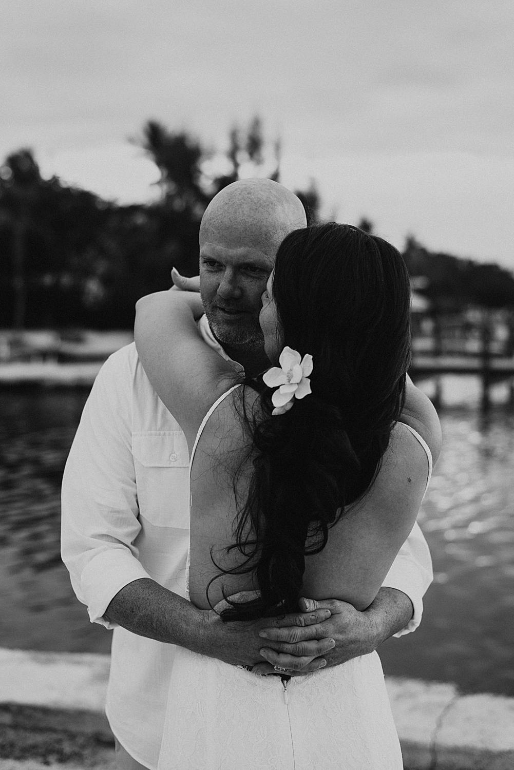 Kona Kai is the perfect resort for a Key Largo elopement! There’s these cute private cottages dotting the property that opens up to a huge dock with expansive views of the gulf. Honestly, it’s a first-class seat to the most epic Florida sunsets and exactly what Florida key elopements need. Jessica and James invited me down to Kona Kai to take some photos, make inappropriate jokes, explore the property, and grill out.