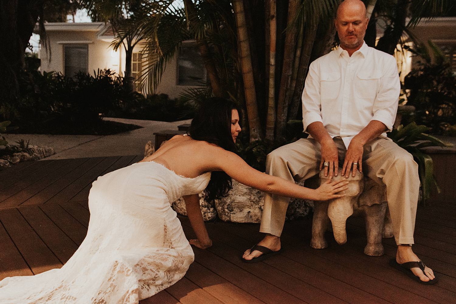 After the ceremony, we hung out for a while and captured alllllllll the portraits showing off their flame for each other around the property. Afterwards, these two grilled and chilled with their favorite third wheel at their cottage tiki. We found this really cool elephant chair and hung out in the Kona Kai art gallery. We ate some cake. We accidentally broke the dress. We did all the things. We had a freakin’ blast and I wish these two a lifetime of inside jokes, tons of laughter, and so many adventures.
